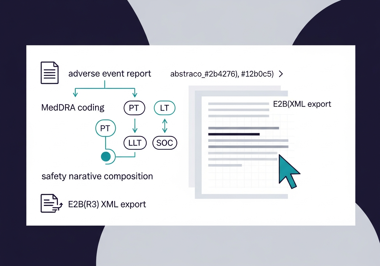 ICSR intake (manual + E2B inbound), MedDRA coding, ICH E2D safety narratives, E2B(R3) export, PSUR/PBRER drafts.